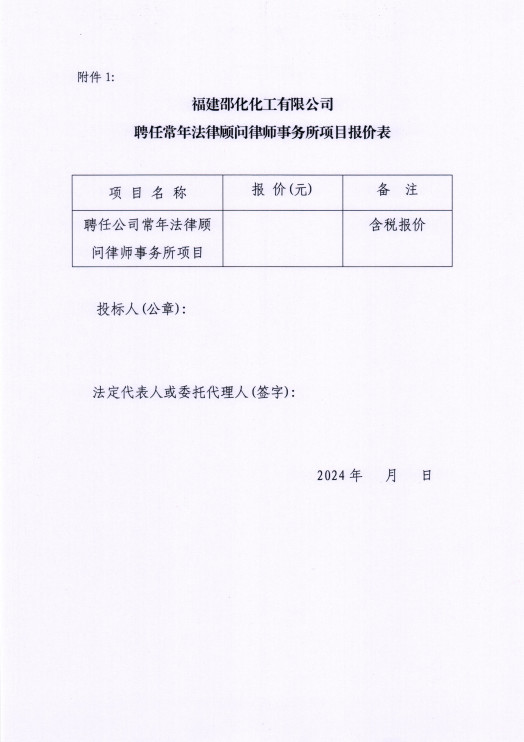 福建邵化化工无限公司聘用终年法令参谋状师事件所名目询比价告诉布告